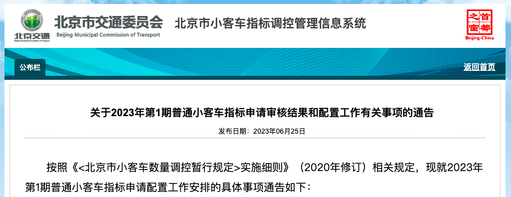 根據(jù)《北京市小客車數(shù)量調(diào)控暫行規(guī)定》和實施細則(2020年修訂)相關規(guī)定,現(xiàn)就2023年第1期普通小客車指標申請配置工作安排的具體事項通告如下: