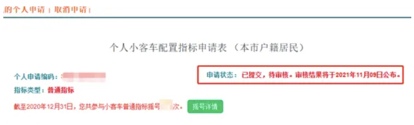 方式二:在”個人小客車配置指標(biāo)申請表”中查詢