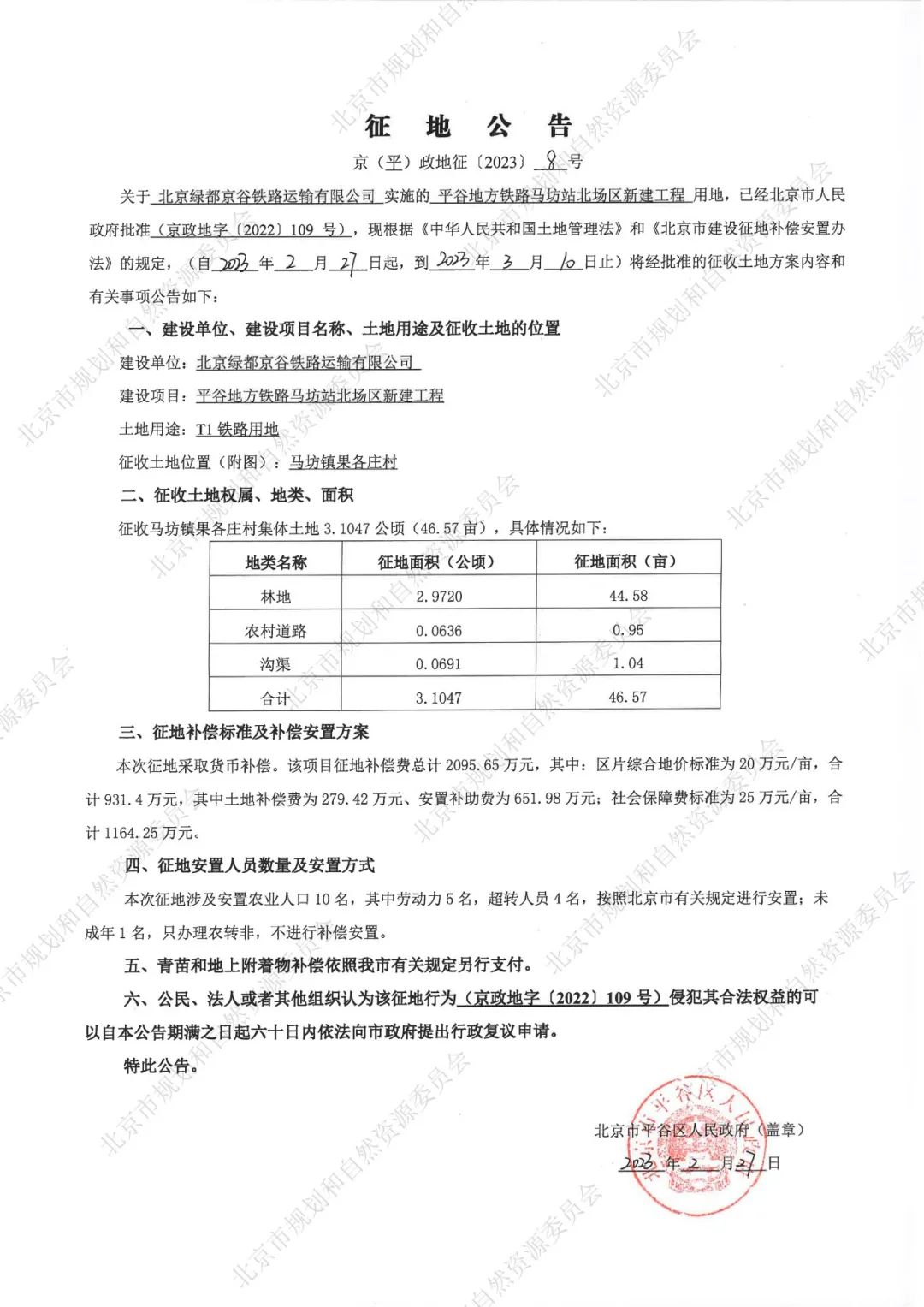 北京平谷區(qū)馬坊鎮(zhèn)果各莊村征地公告