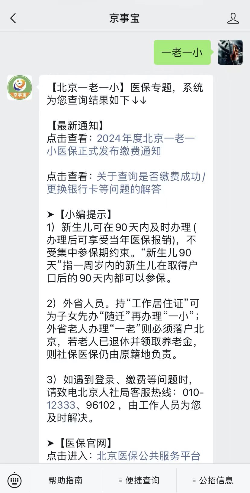溫馨提示:關注【大京事】微信公眾平臺,可及時獲取最新北京市一老一小醫(yī)保繳費入口、參保人資格條件、報銷指南、定點醫(yī)院更改等政策及常見問題答疑。