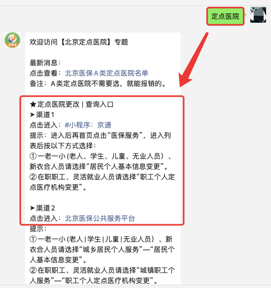 溫馨提示:大家也可以關(guān)注【大京事】微信公眾號,回復(fù)關(guān)鍵詞“定點(diǎn)醫(yī)院”即可直接查找到變更入口、操作指南等。