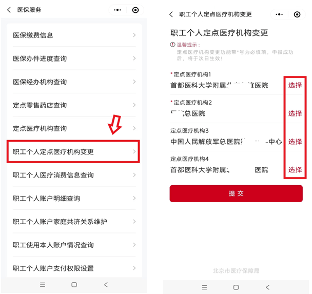 答:可以。退休人員同在職職工一樣,可通過“京通”小程序與“北京市社會保險(xiǎn)網(wǎng)上服務(wù)平臺”自助變更定點(diǎn)醫(yī)院。