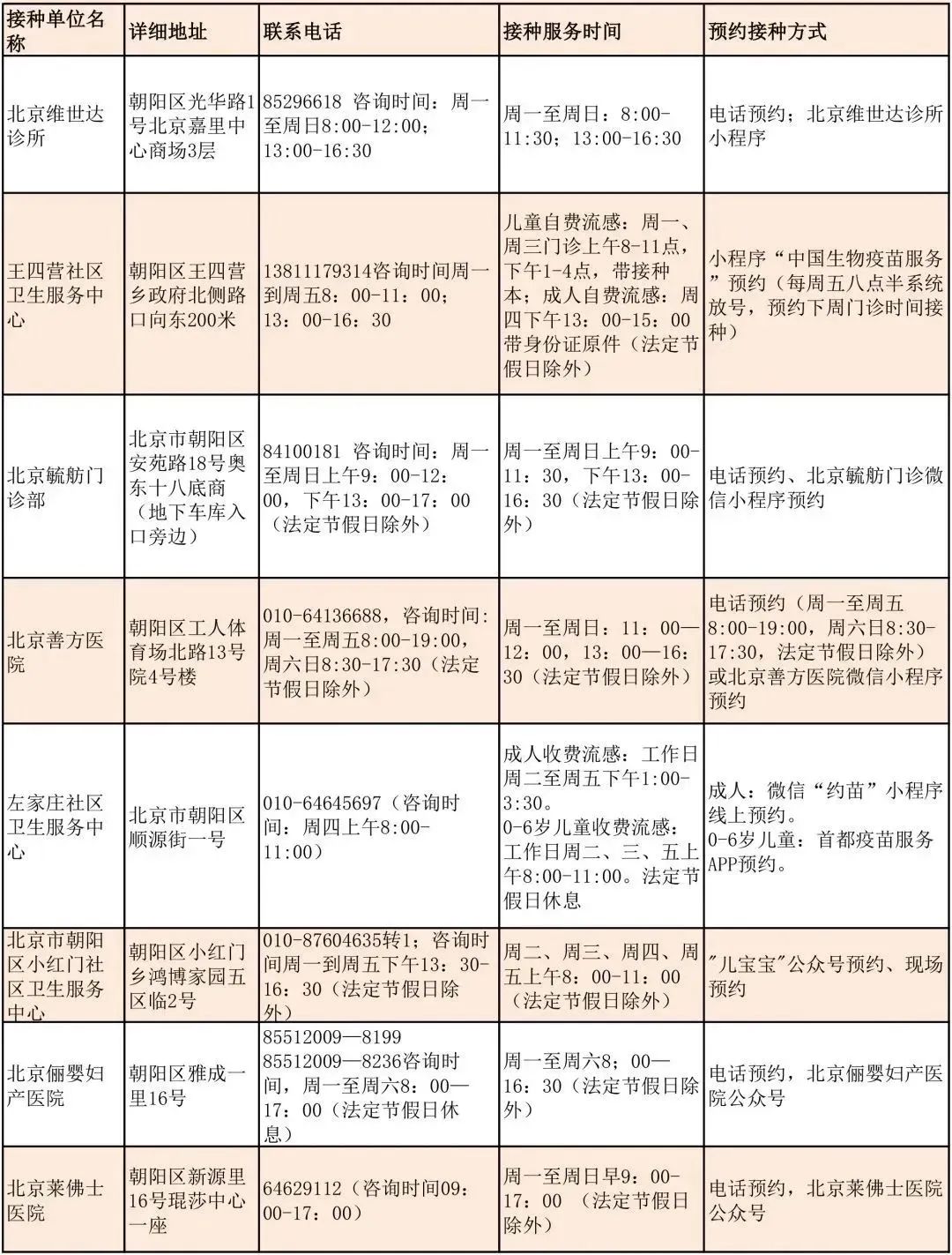 北京朝陽區(qū)流感疫苗接種門診服務(wù)時(shí)間公示來了,具體事宜可咨詢接種門診