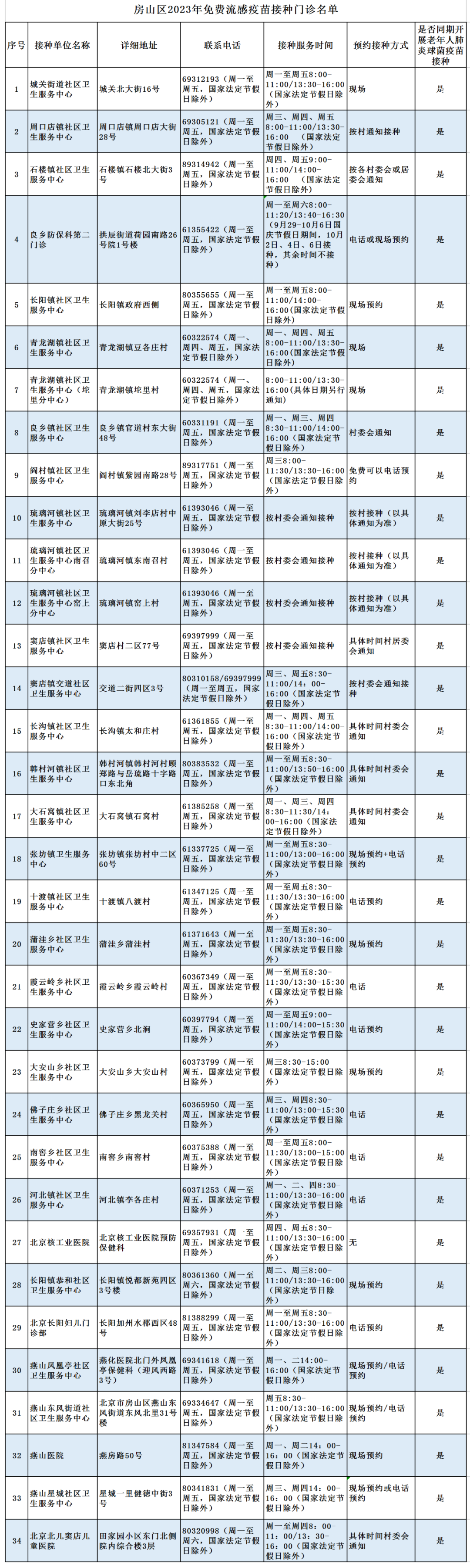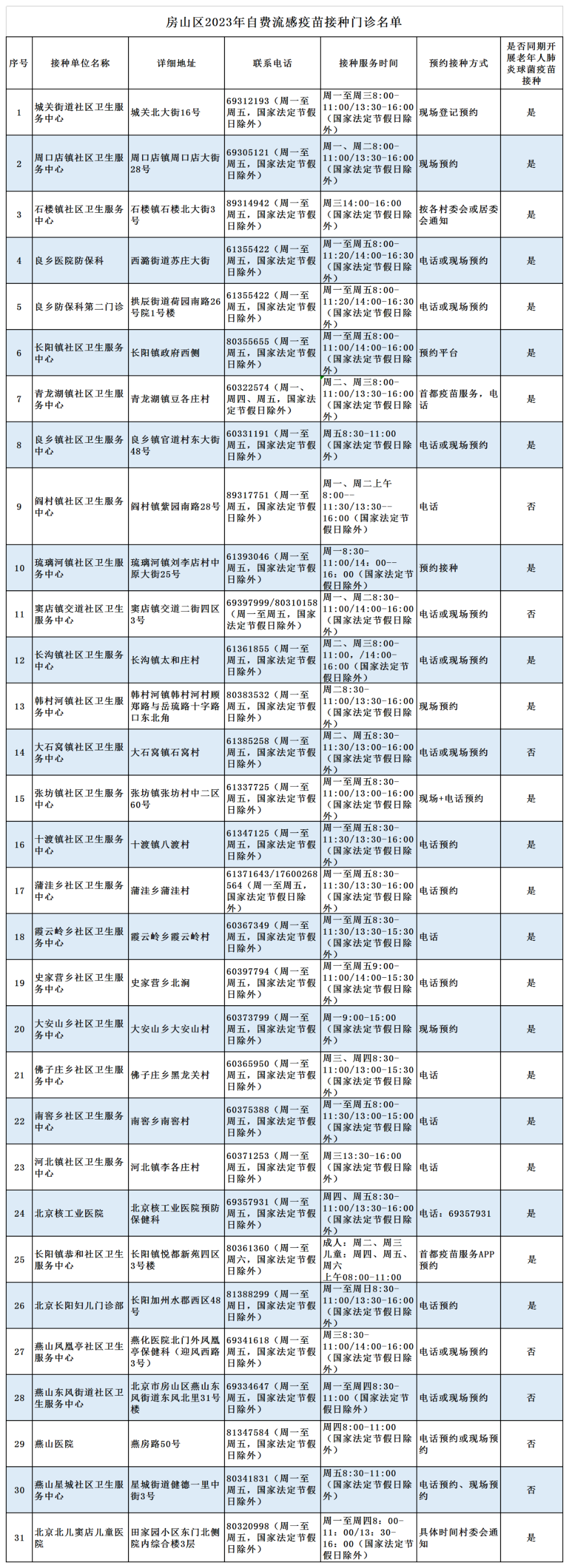 北京房山區(qū)流感疫苗接種門診服務(wù)時間公示來了,具體事宜可咨詢接種門診